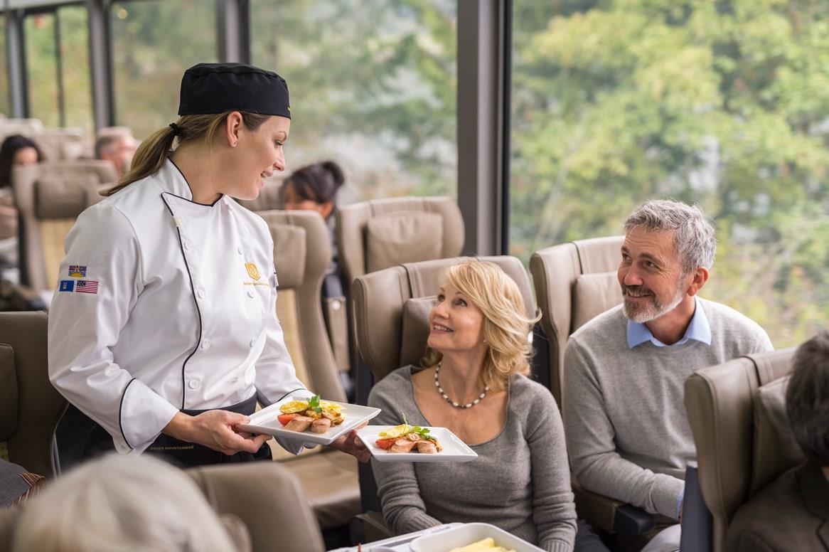 Enjoy gourmet meals served in the comfort of your seat. It might even take your eyes away from the window – at least for a little while.